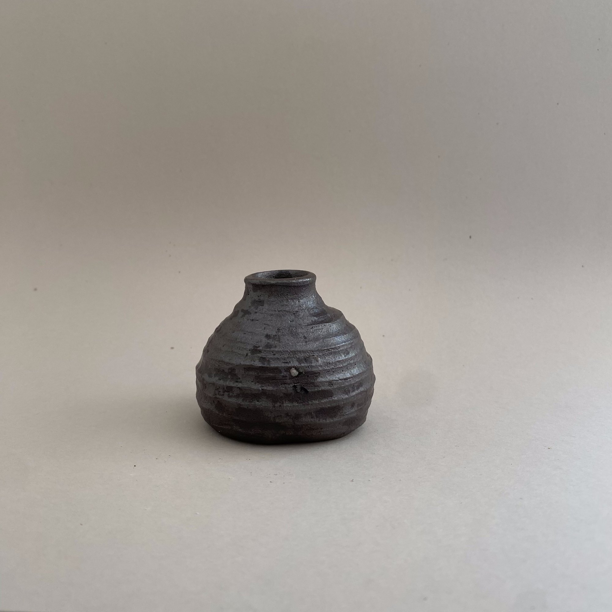 Thrown with soft, visible rings, the surface holds the rhythm of the wheel.