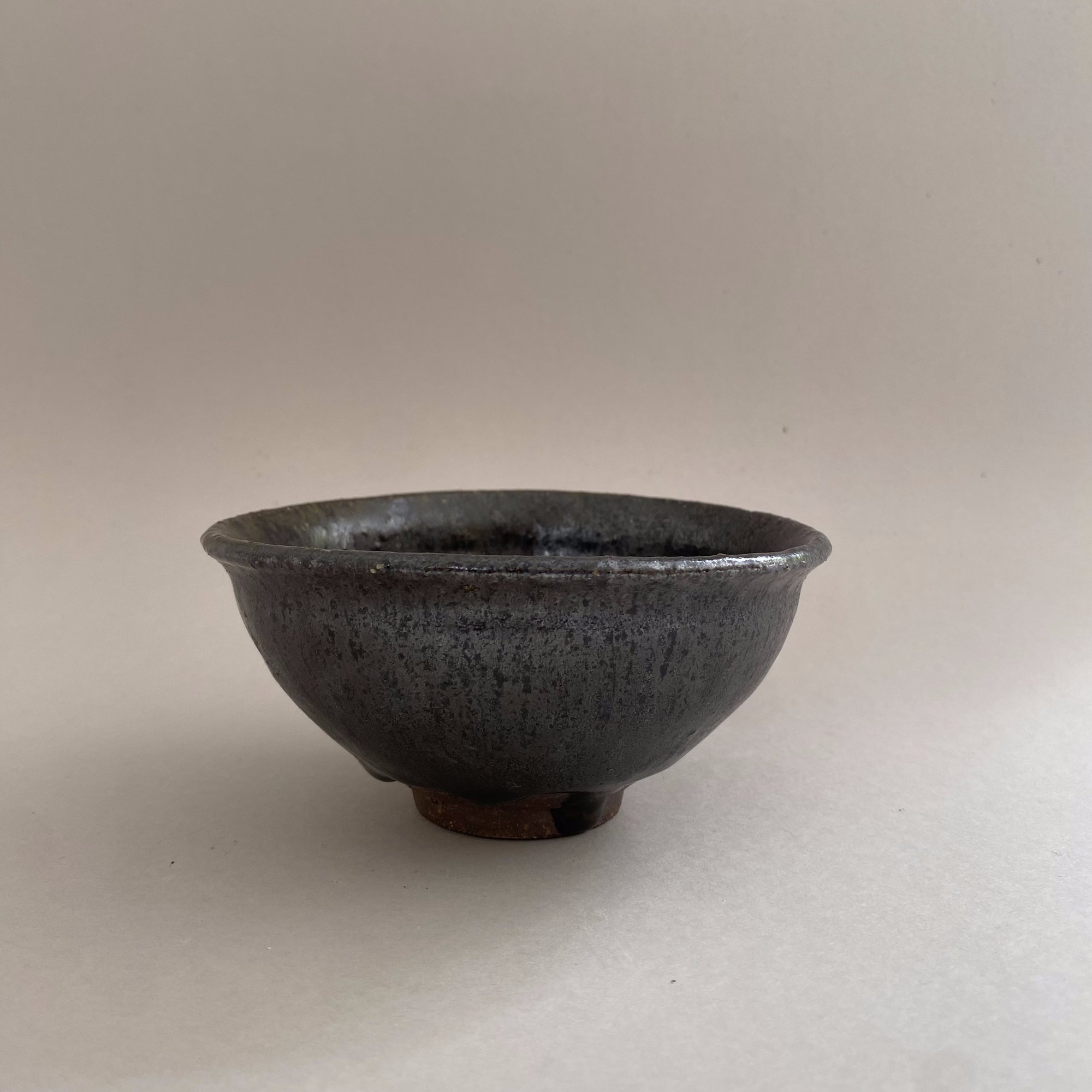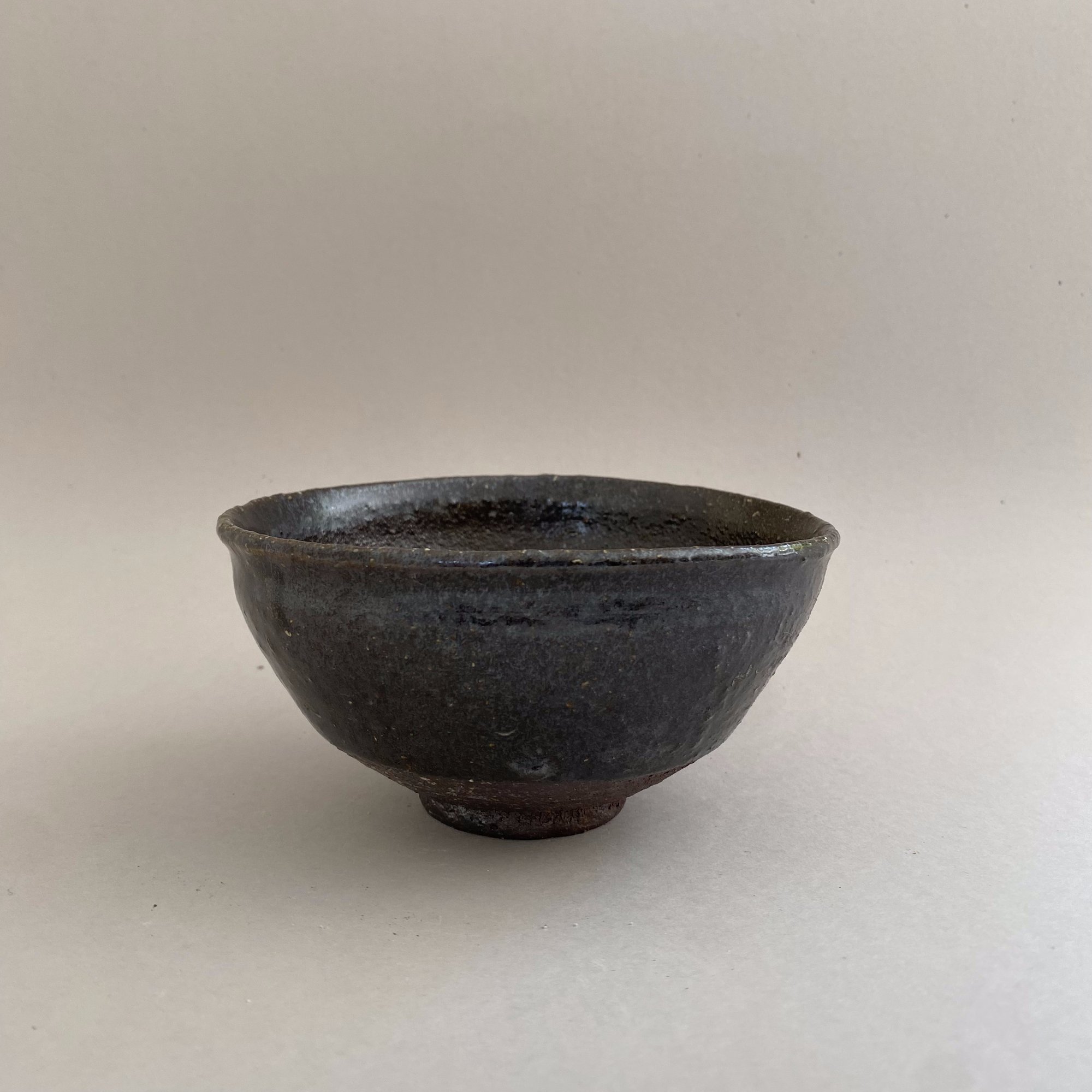 A Tenmoku bowl by Jack Tilson, light in the hand and quietly balanced on a lifted foot.